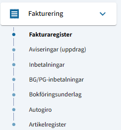 - Navigera till Fakturaregister