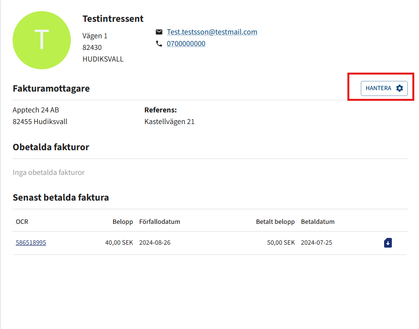 Ändringar påverkar alla medlemmar kopplade till samma fakturamottagare.