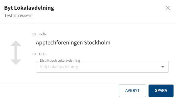 - Välj ett "Distrikt och Lokalavdelning" från listan.